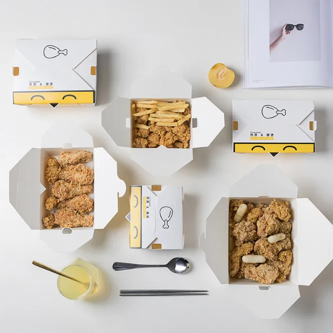 ປ່ອງໄກ່ຂົ້ວແມ່ນປະເພດຂອງຖັງຫຸ້ມຫໍ່ເຈ້ຍໄກ່ຂົ້ວທີ່ຖືກອອກແບບໂດຍສະເພາະສໍາລັບອຸດສາຫະກໍາອາຫານໄວ. ກ່ອງໄກ່ຂົ້ວແມ່ນເຮັດດ້ວຍກະດານອາຫານທີ່ທົນທານຕໍ່ກັບອຸນຫະພູມສູງແລະນ້ໍາມັນ, ນ້ໍາແລະຫຼັກຖານທີ່ຮົ່ວ, ເຫມາະສໍາລັບອາກາດຮ້ອນແລະເຢັນ, ແລະງ່າຍຕໍ່ການຫຸ້ມຫໍ່. ມັນແມ່ນກ່ອງຂົ້ວທີ່ມີປະໂຫຍດດ້ວຍການປະທັບຕາແລະການສນວນທີ່ດີ, ເຊິ່ງສາມາດຮັກສາຄວາມສົດແລະອຸນຫະພູມໄດ້ຢ່າງມີປະສິດຕິຜົນສູງ. ກ່ອງໄກ່ຂົ້ວທີ່ຜະລິດໂດຍໂຮງງານ Zemeijia ສະຫນັບສະຫນູນການພິມຕາມແບບລູກຄ້າແລະເຫມາະສົມສໍາລັບການທົດລອງ, ການບໍລິການ, ແລະການສະແດງຂອງພັກ.
